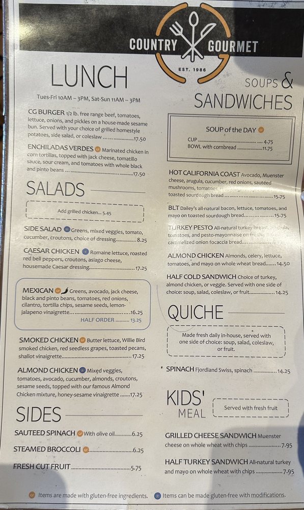 Welcome to Country Gourmet, a delightful American eatery located in Sunnyvale, California, renowned for its scrumptious breakfast and brunch offerings. Here, you can savor a variety of mouthwatering desserts, take your pick from vibrant salads like the Almond Chicken Salad or indulge in hearty lunch options such as a classic grilled cheese or half turkey sandwich.